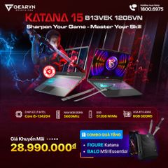 | Katana 15 B13VEK 1205VN Đặc điểm nổi bật ✔ Màn hình : 15.6 inch FHD IPS 144Hz ✔ CPU: i5 13420H ✔ GPU: RTX 4050 ✔ SSD: 512GB ✔ RAM: 8GB |