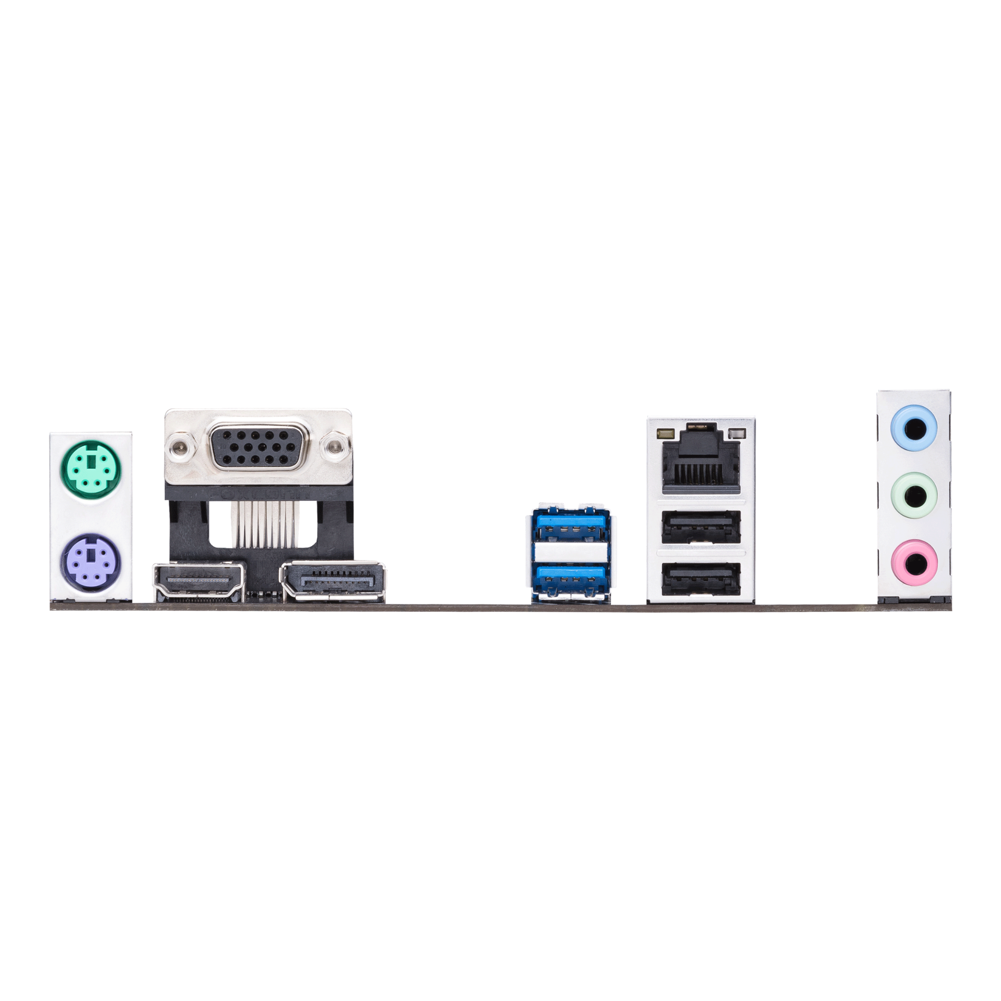 | Back Panel I/O Ports | 2 x USB 3.2 Gen 1 ports (2 x Type-A) 2 x USB 2.0 ports (2 x Type-A) 1 x DisplayPort 1 x D-Sub port 1 x HDMI™ port 1 x Intel® I219-V 1Gb Ethernet port 3 x Audio jacks 1 x PS/2 Keyboard (purple) port 1 x PS/2 Mouse (green) port |