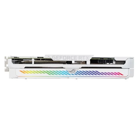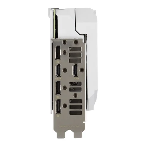 Phía sau card màn hình ASUS ROG Strix GeForce RTX 3070 White còn được hãng trang bị thêm hai đầu cắm PWM FanConnect. Bạn có thể gắn trực tiếp thêm khung quạt vào GPU để tối ưu hiệu suất làm việc cho các tác vụ 3D khắc nghiệt.