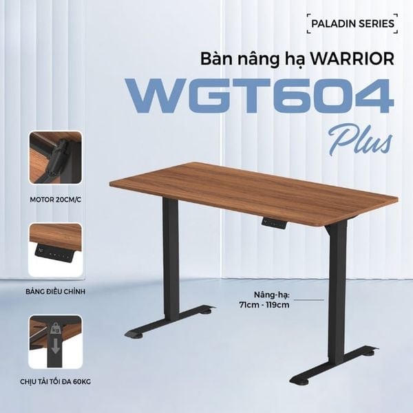 Với thiết kế chắc chắn, tính năng nâng hạ linh hoạt và bề mặt rộng, bàn nâng hạ Warrior Paladin Series WGT604 Plus phù hợp cho cả setup gaming, làm việc tại nhà hay văn phòng nhỏ. Người dùng có thể thoải mái sắp xếp màn hình, laptop, loa, tay cầm và phụ kiện mà không lo thiếu diện tích hay kém ổn định. Nếu bạn đang tìm một chiếc bàn vừa đẹp, vừa hỗ trợ tốt cho sức khỏe khi dùng máy tính lâu, mẫu bàn này là một lựa chọn rất đáng để cân nhắc.