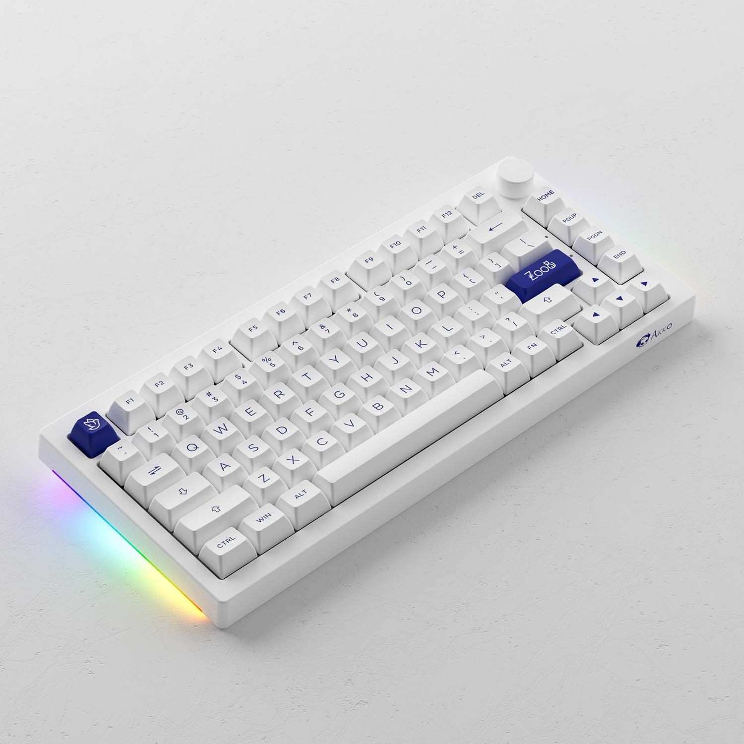 AKKO 5075B Plus Blue on White là dòng bàn phím TKL sở hữu layout 75% vô cùng nhỏ gọn nhưng vẫn đáp ứng tốt mọi nhu cầu từ hàng triệu người sử dụng. Cùng với đó, AKKO còn tinh tế trang bị thêm núm xoay tiện lợi.