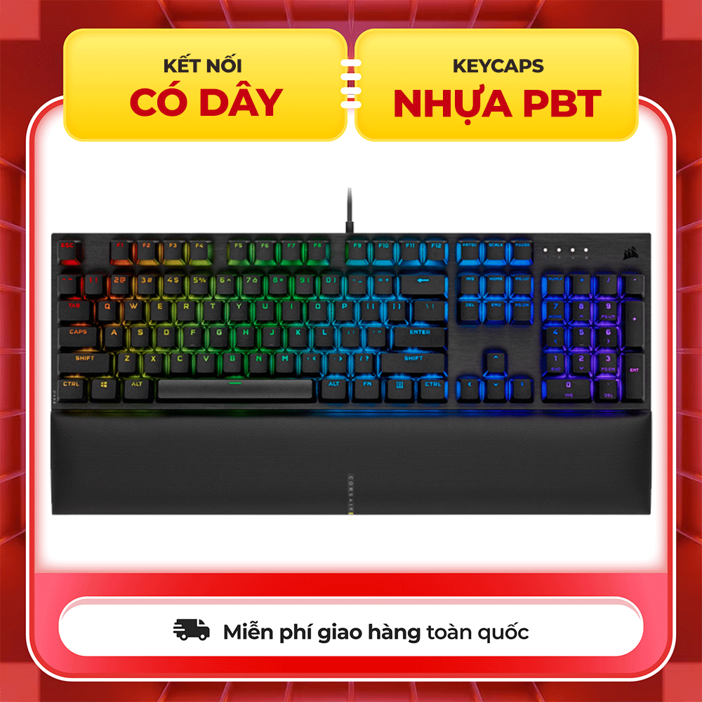Bạn có thể hoàn toàn yên tâm sử dụng bàn phím K60 Pro SE RGB với tần suất cao trong từ nhu cầu sử dụng mà không cần lo keycaps sẽ phai dần theo thời gian. Được Corsair sử dụng bộ keycaps PBT doubleshot siêu bền đạt chuẩn với độ bền cao, cứng, khó bị mài mòn khi sử dụng thời gian dài. Đặc biệt, không bị biến màu sau thời gian dài tiếp xúc.