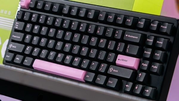 Hi86 TM gây ấn tượng với tông màu đen hồng mang hơi hướng Bắc Âu, tạo cảm giác hiện đại nhưng vẫn giữ nét mềm mại, dễ phối với nhiều phong cách góc máy. Thân vỏ được làm từ hợp kim nhôm cho cảm giác cầm nắm và sử dụng chắc tay, đồng thời tăng độ bền khi dùng lâu dài. Bên cạnh đó, bộ keycap PBT double-shot đi kèm giúp bề mặt phím khó phai ký tự, duy trì độ bám tốt khi gõ trong thời gian dài.