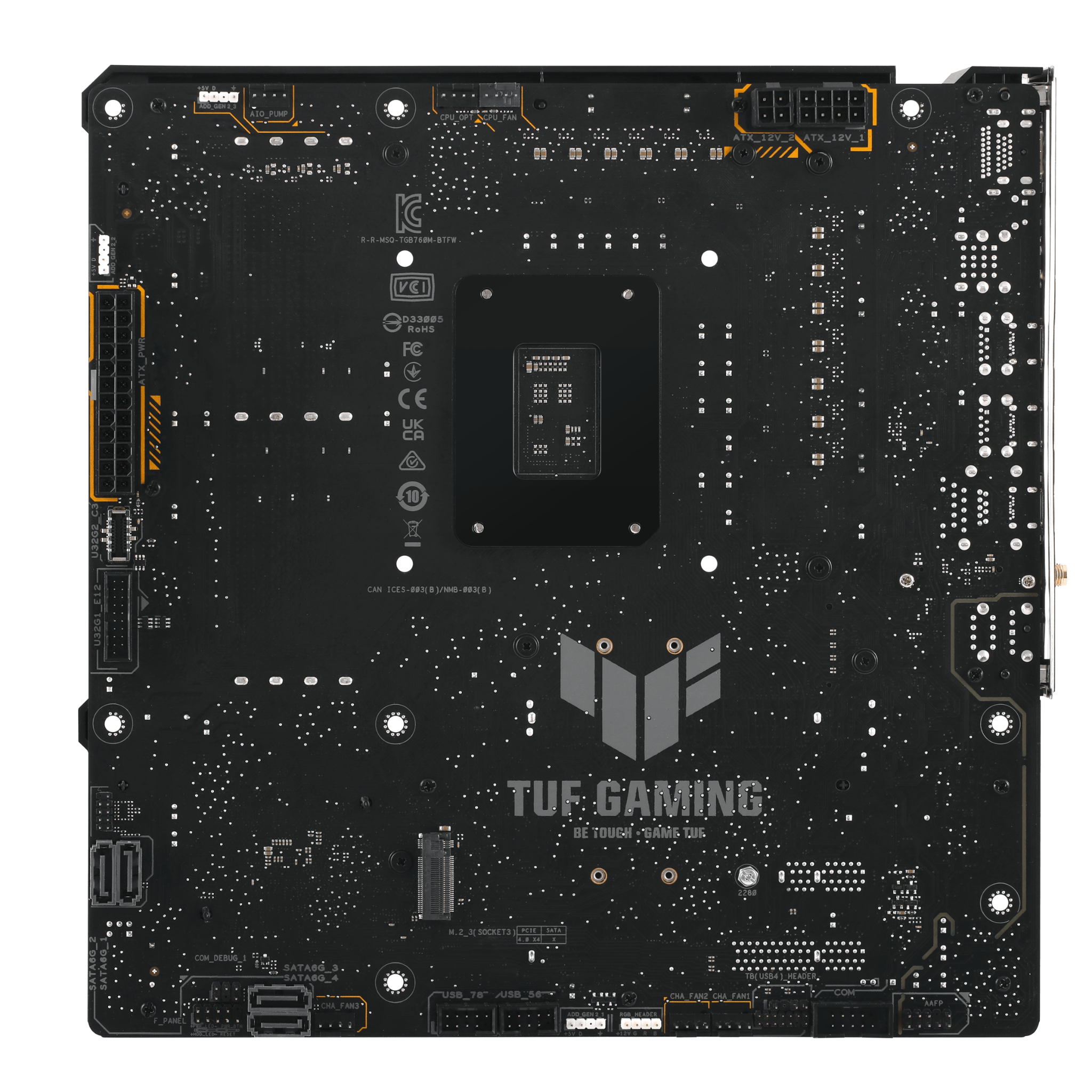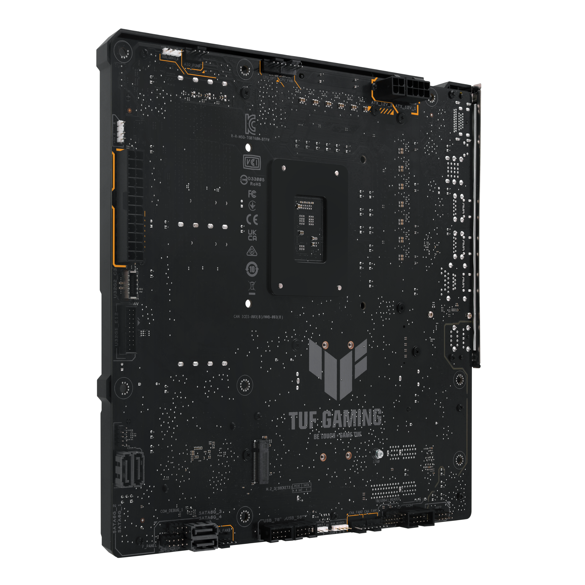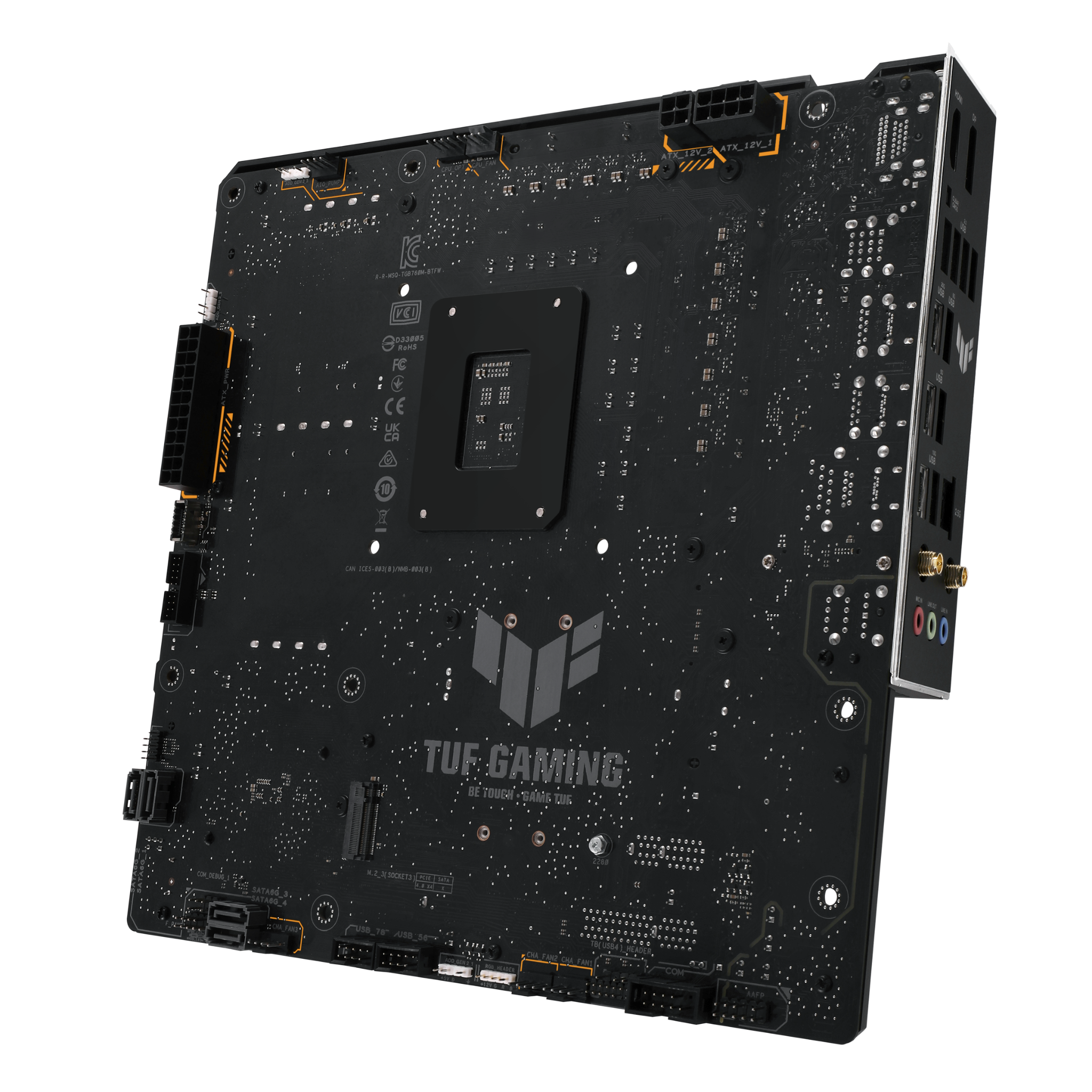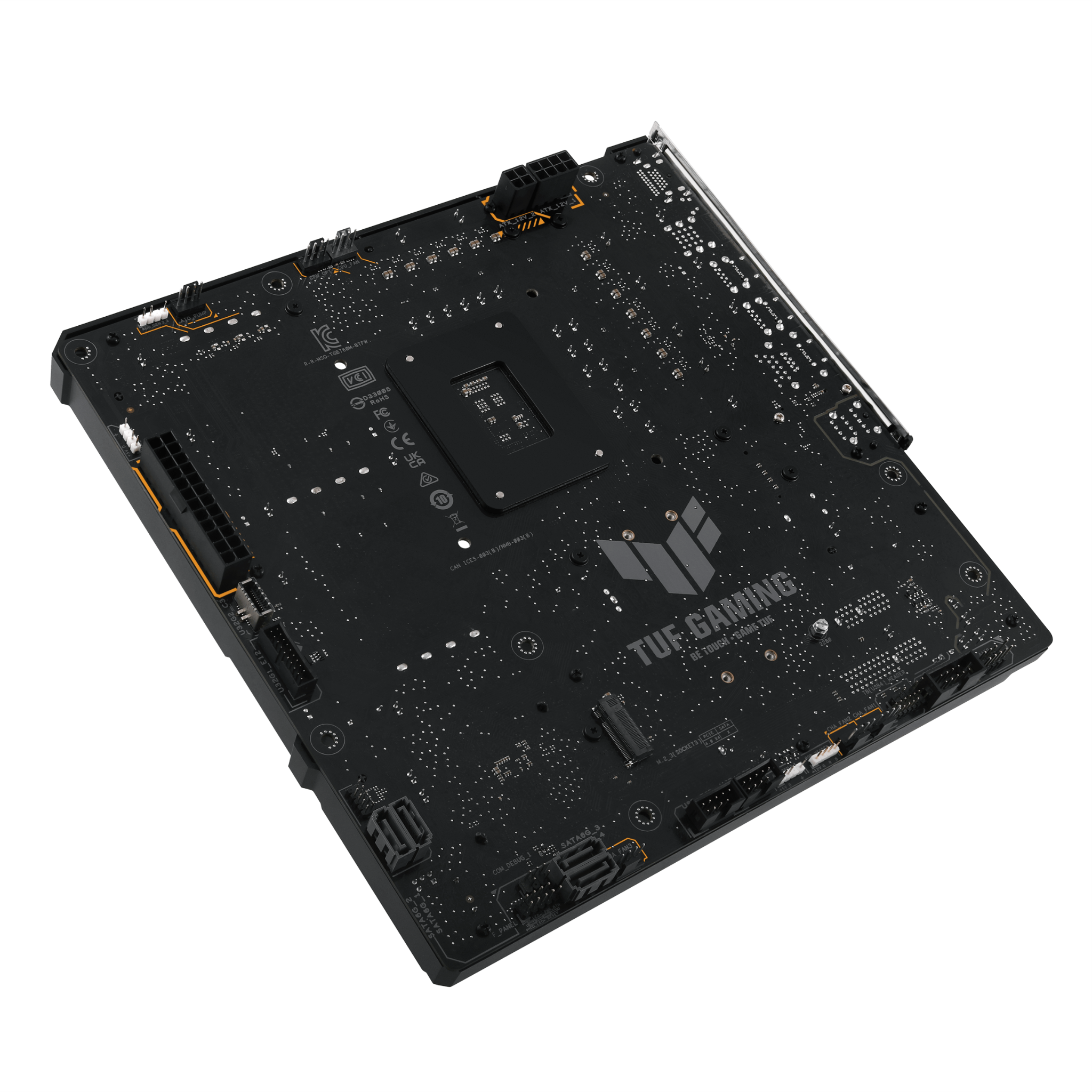 Điểm nhấn độc đáo và giá trị nhất của mainboard này chính là thiết kế "BTF" (Back To Future). Toàn bộ các cổng kết nối quan trọng như nguồn 24-pin, nguồn CPU 8-pin, cổng SATA, header USB và quạt đều được di chuyển ra mặt sau của bo mạch chủ.