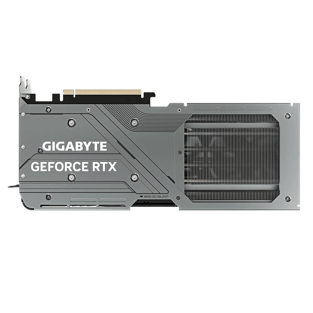 Card màn hình GIGABYTE GeForce RTX 4070 Ti GAMING OC V2 có một kết cấu phía sau bằng tấm lưng kim loại giúp cho gia tăng độ thẩm mỹ và nâng cao cấu trúc chiếc card RTX 4070 Ti này ngoài ra kết cấu có thêm một giá đỡ võng được thiết kế để giá cố tổng thể tốt hơn.