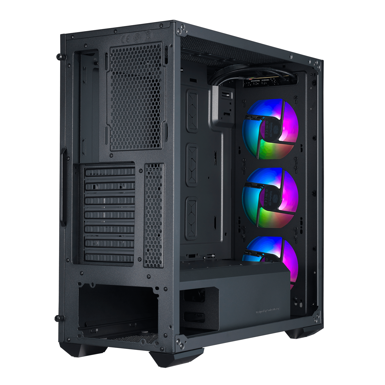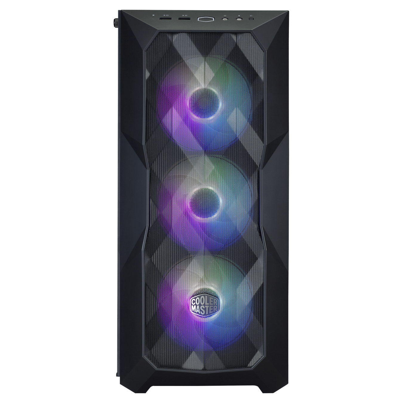 Ngoài ra, Cooler Master MASTERBOX TD500 còn lắp sẵn cho người dùng 3 quạt ARGB nằm phía trước lưới đa giác giúp mang lại luồng gió mạnh cho hệ thống. Các đèn LED từ 3 quạt ARGB đi kèm sẽ phản ứng với đường viền của lưới tùy theo góc nhìn. Công nghệ tiên tiến này làm cho MasterBox TD500 Mesh trở nên độc đáo và ấn tượng hơn so với các loại case máy tính cùng loại trên thị trường hiện nay.