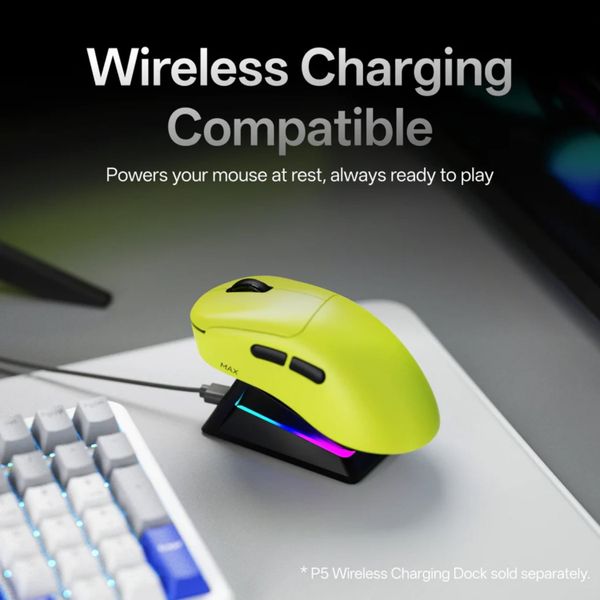 Sản phẩm hỗ trợ polling rate lên đến 8000Hz, giúp tín hiệu gửi về PC mượt mà và dày đặc hơn hẳn so với chuẩn 1000Hz thông thường. Kết hợp kết nối 2.4GHz hỗ trợ độ trễ siêu thấp, lý tưởng cho game FPS cạnh tranh hay những tựa game cần phản xạ nhanh.