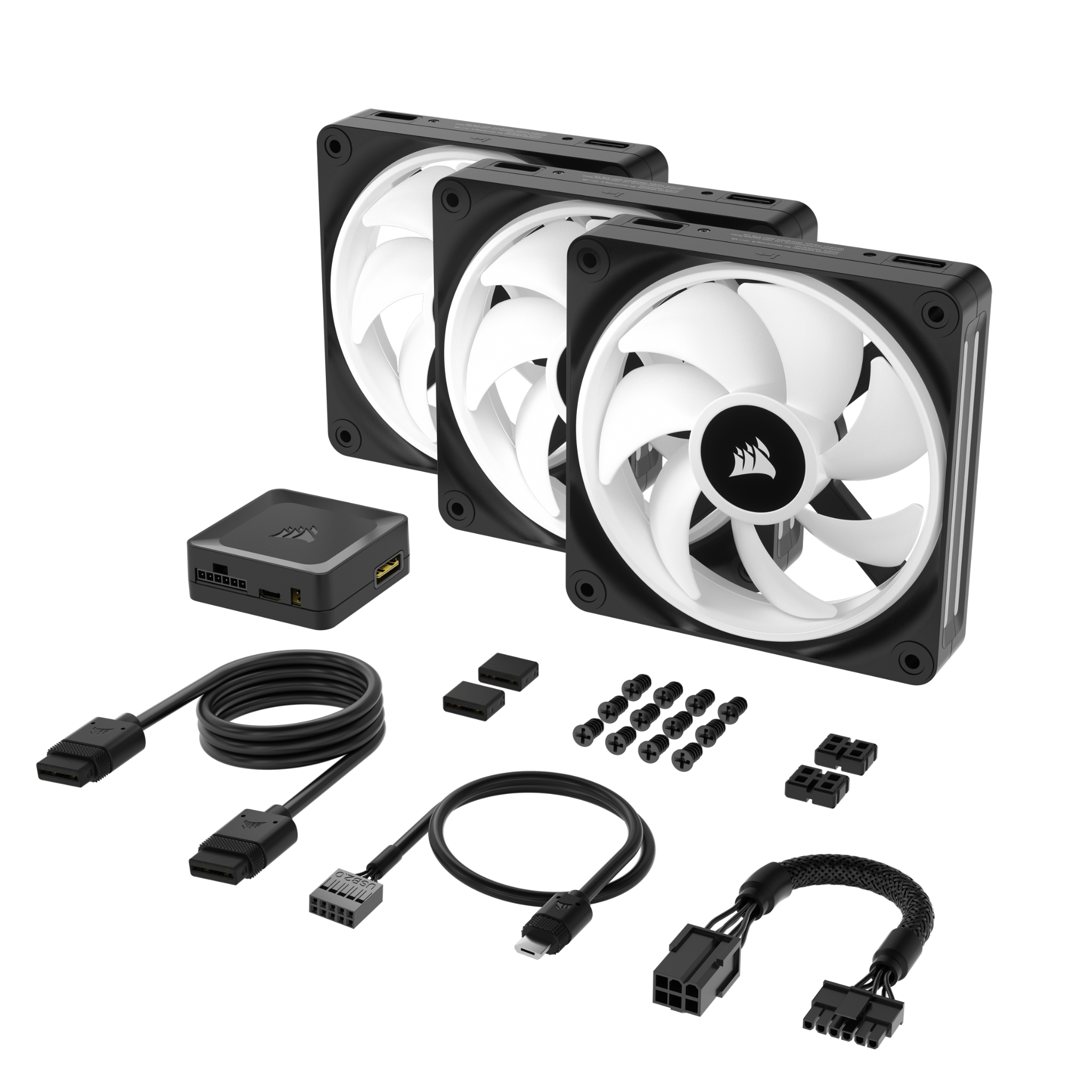 Bộ 3 quạt Corsair iCUE LINK QX120 RGB kèm iCUE LINK Hub (CO-9051002-WW)