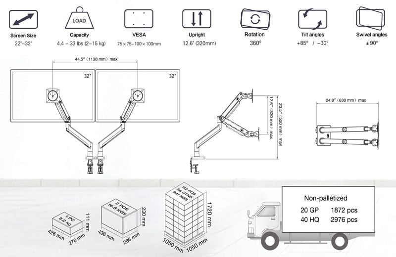 Giá treo màn hình máy tính North Bayou Dual Monitor NB-G32