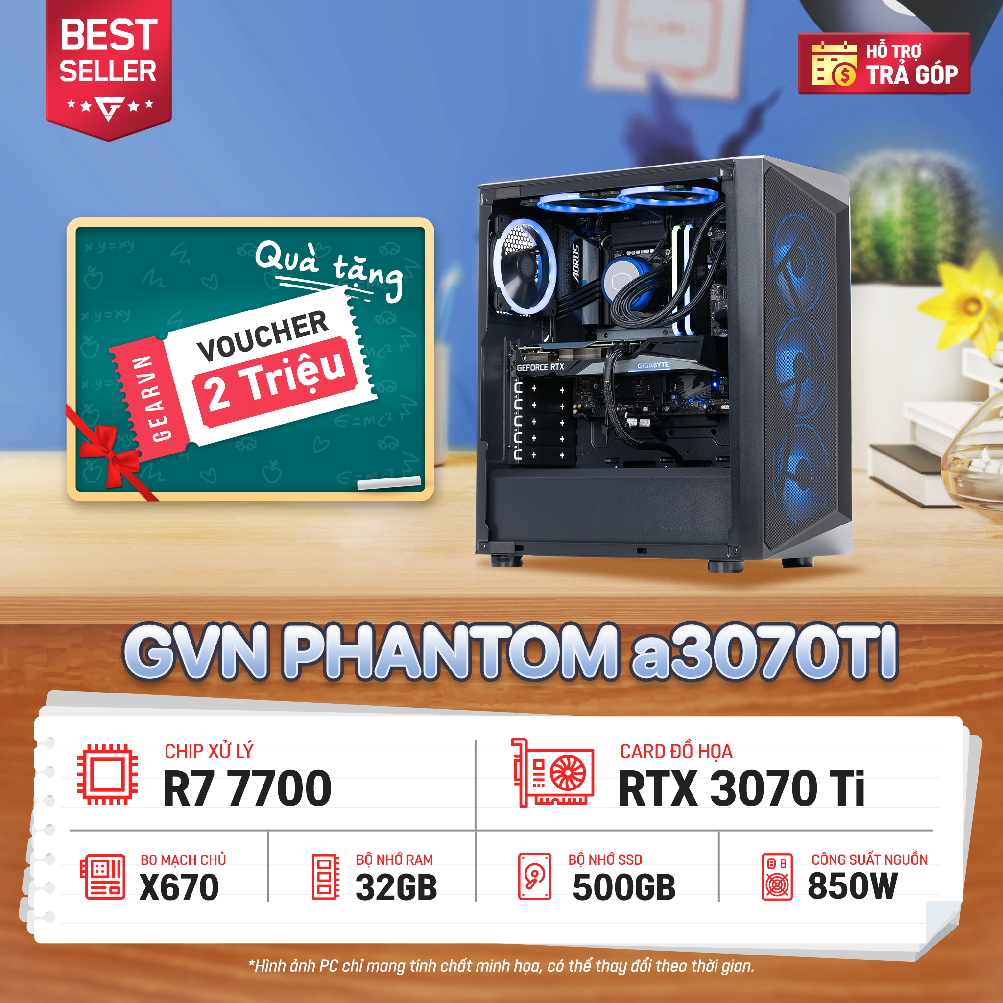 Một trong những linh kiện PC không thể thiếu cho những bộ máy Gaming cao cấp, GVN PHANTOM a3070Ti sử dụng card đồ họa ASUS TUF Gaming GeForce RTX3070Ti V2 đáp ứng tốt nhu cầu chơi game ở độ phân giải 4K cùng thiết lập đồ họa tối đa.