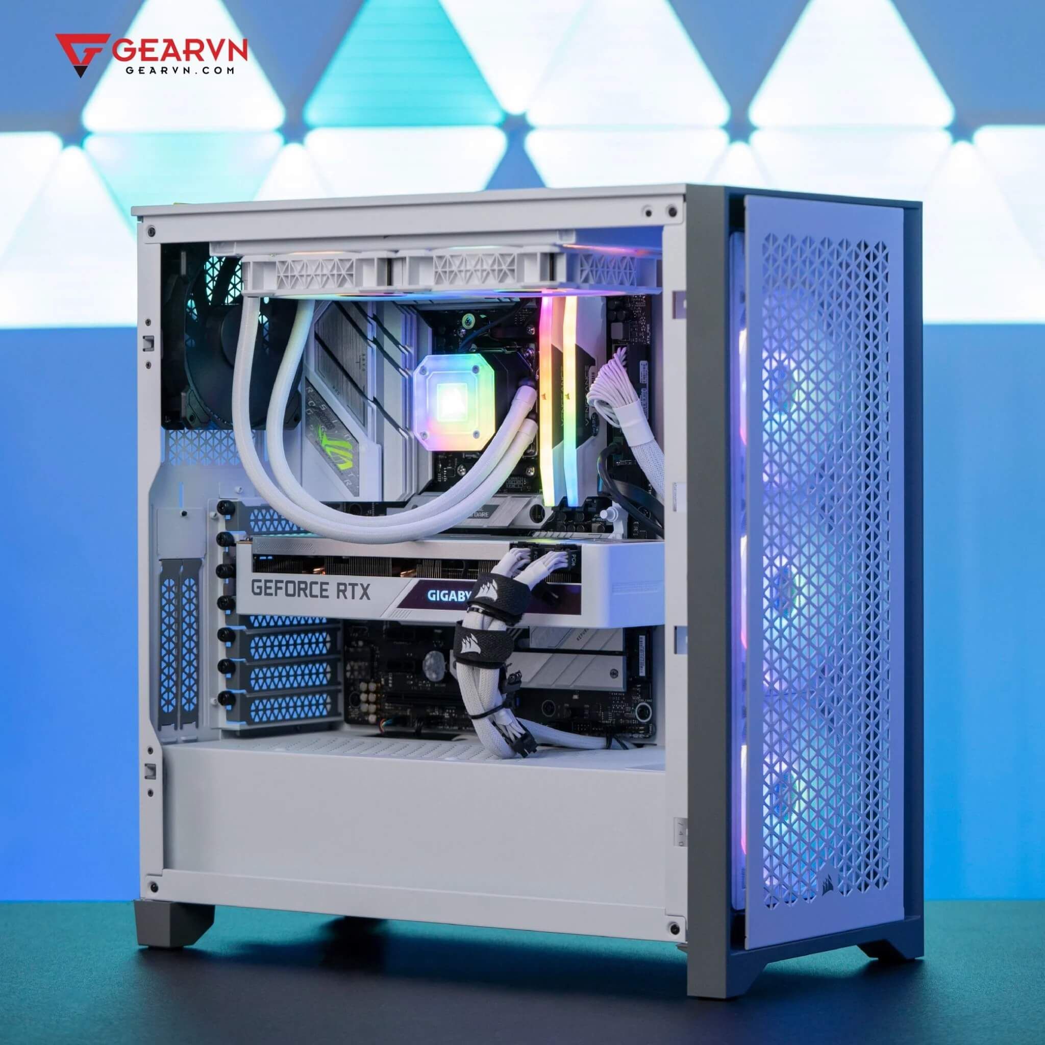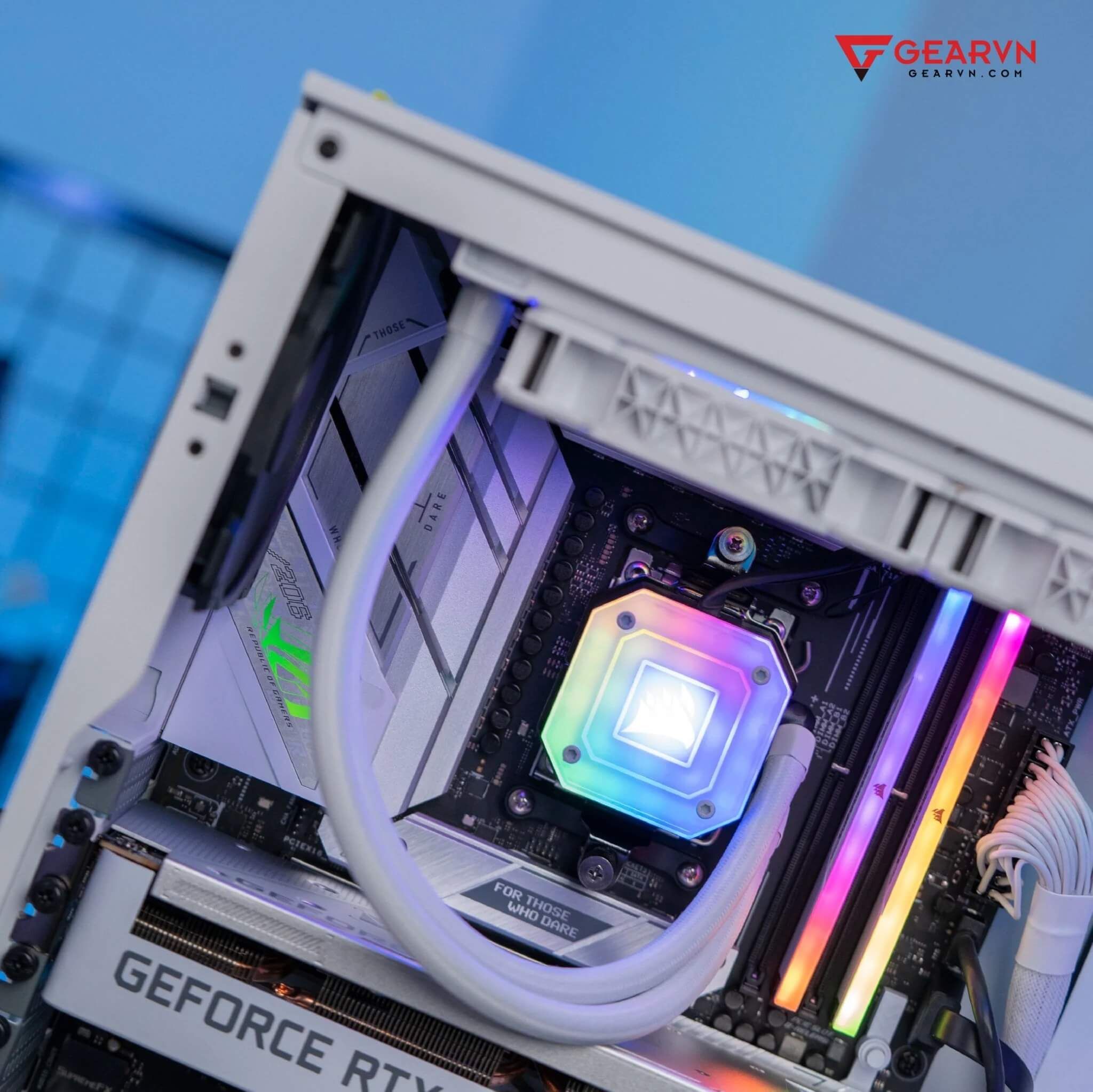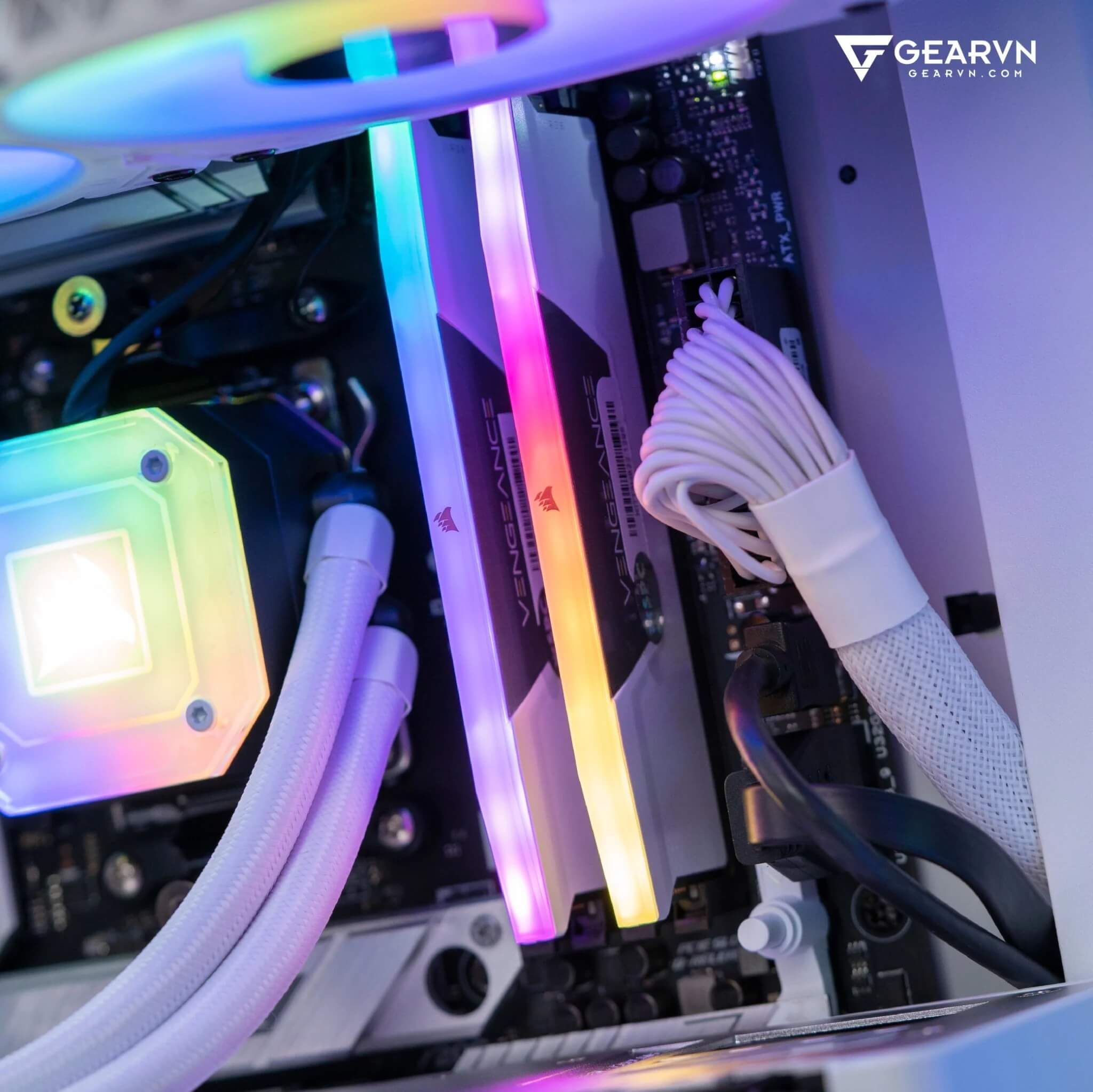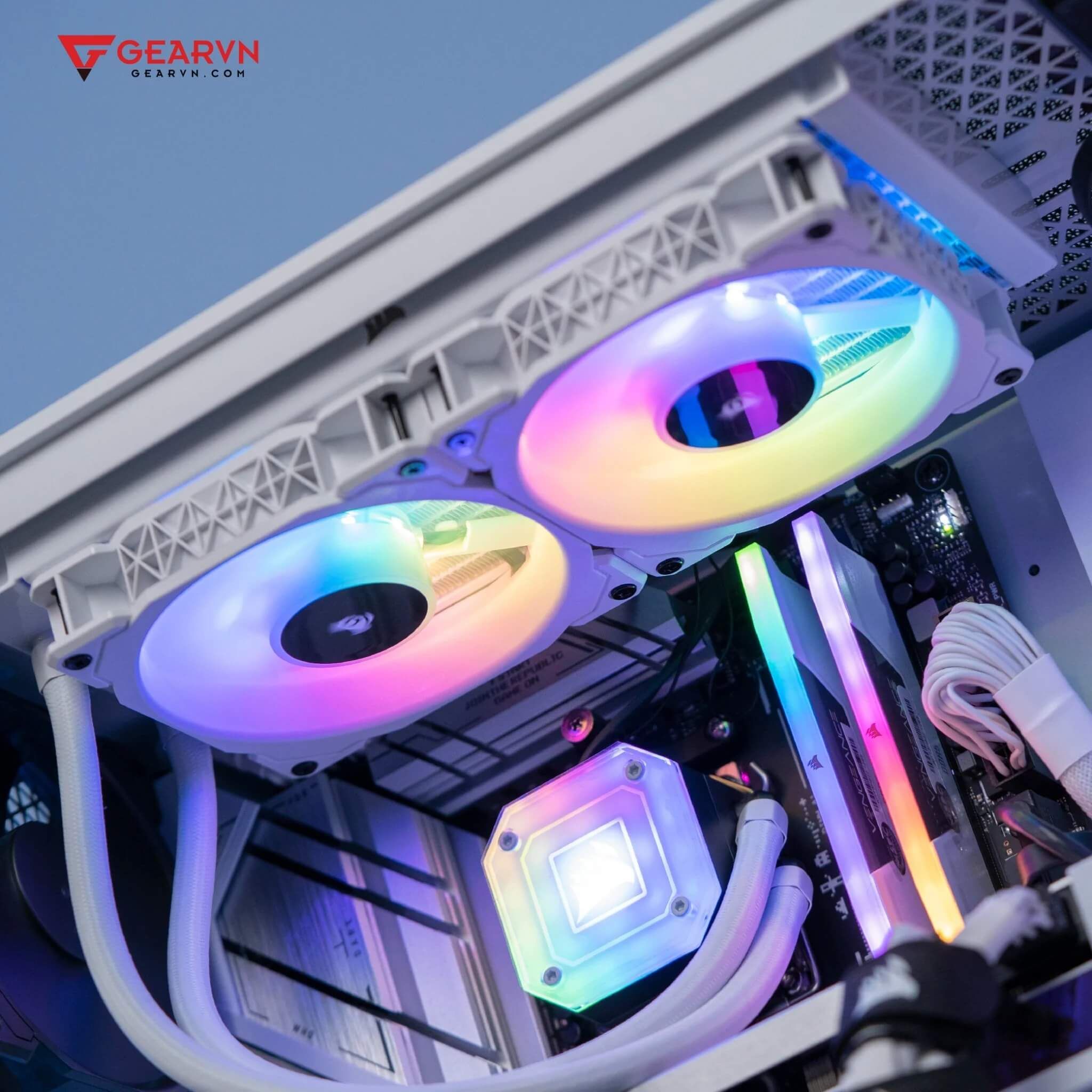Đảm nhiệm vai trò trích xuất dữ liệu và thông tin trên GVN ProArt Plus 5 a3070 sẽ là 2 kit RAM từ Corsair với model Vengeance RGB 32GB 5600 White. Về hiệu năng, có lẽ chúng ta không cần bàn cãi khi cái tên này luôn có mặt trong top RAM DDR5 đáng sử dụng nhất trên thị trường. Và để phù hợp với tông màu của bộ PC, màu trắng cùng dải đèn LED RGB của Corsair Vengeance RGB White sẽ là một “ngôi sao” tô điểm cho góc làm việc của bạn.