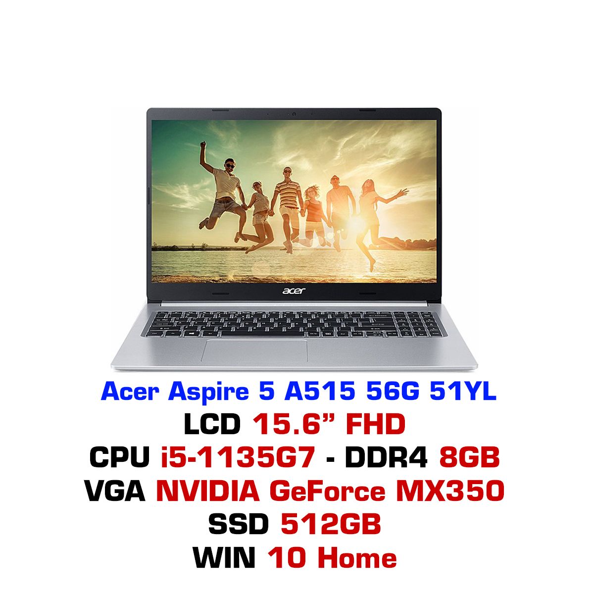 | Màn hình | 15.6" FHD(1920 x 1080) Acer ComfyView IPS LED LCD, 60Hz |