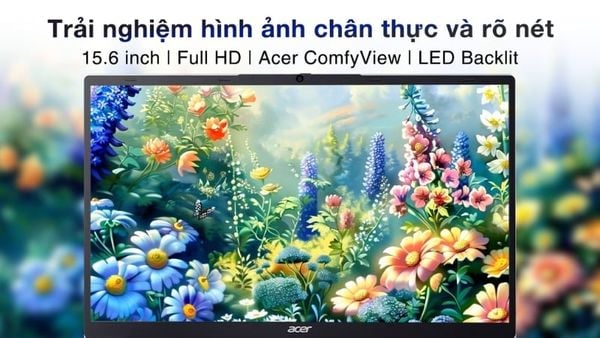 Chiếc laptop sở hữu màn hình 15.6 inch độ phân giải Full HD (1920 x 1080), mang đến không gian hiển thị rộng, hình ảnh rõ và dễ chịu khi làm việc lâu. Diện tích màn hình lớn giúp bạn thoải mái xử lý bảng tính, đọc tài liệu dài, chia đôi màn hình để đa nhiệm, đồng thời nâng tầm trải nghiệm xem phim, học online hay trình chiếu trong lớp học, phòng họp rất tiện cho cả công việc lẫn giải trí.