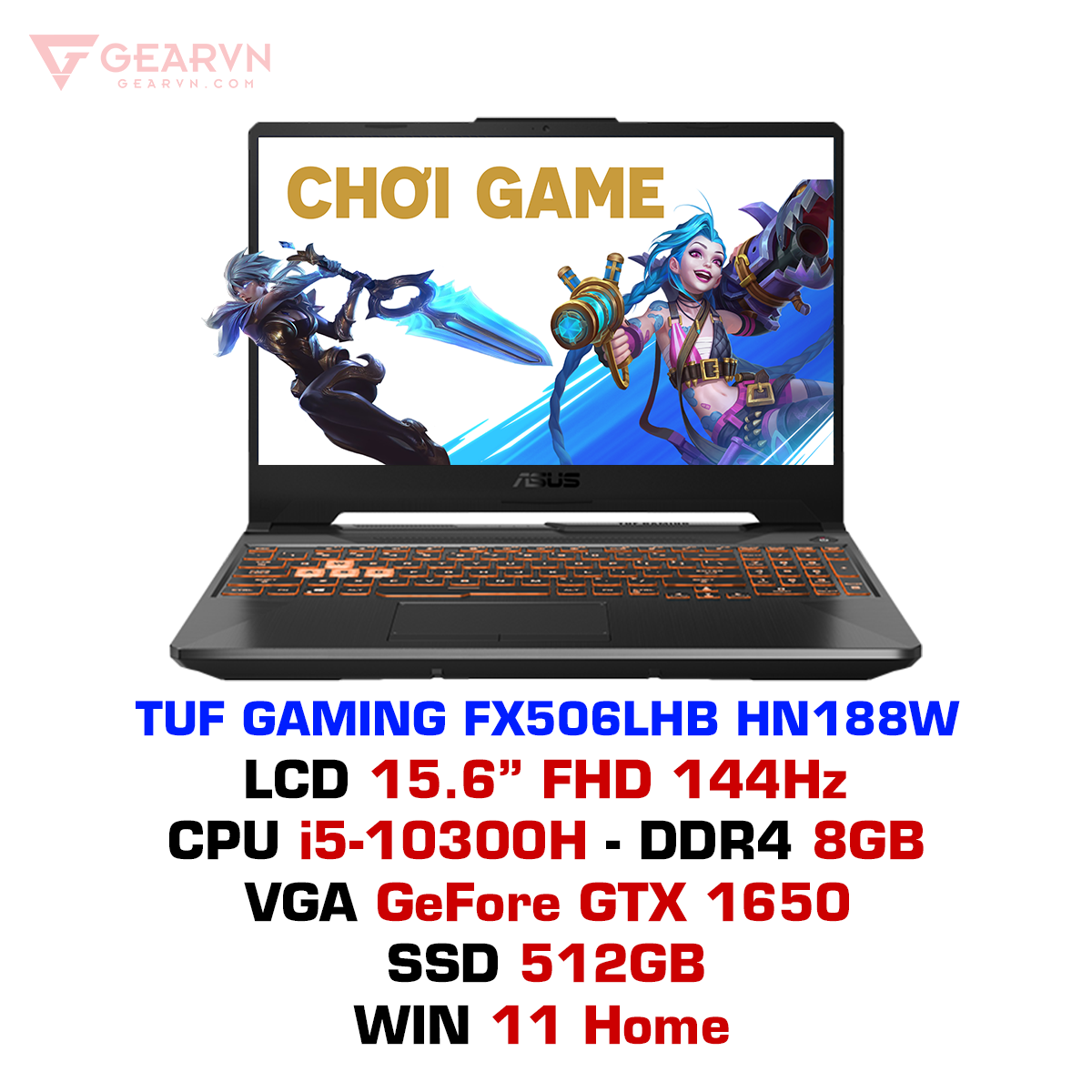 Laptop gaming ASUS TUF Gaming F15 FX506LHB HN188W được trang bị với CPU Intel Core i5-10300H và GPU GeForce GTX™ 1650 mạnh mẽ, các tựa game hành động sẽ chạy nhanh, mượt mà và khai thác tối đa màn hình IPS tần số quét 144Hz. Hệ thống tản nhiệt tự làm sạch hiệu quả kết hợp với độ bền đạt chuẩn quân đội của TUF giúp chiếc máy trở thành chiến binh bền bỉ đáng tin cậy cho các game thủ.