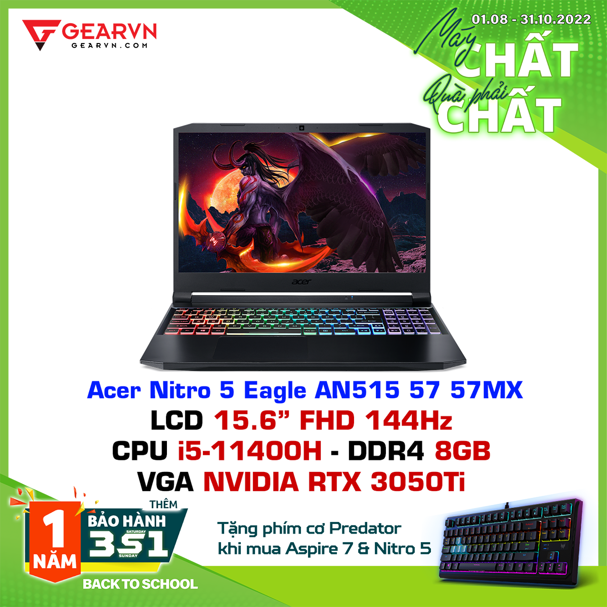🎁 Thêm 01 năm bảo hành VIP 3S1 (Acer Back to School từ 01.08 - 31.10.2022)