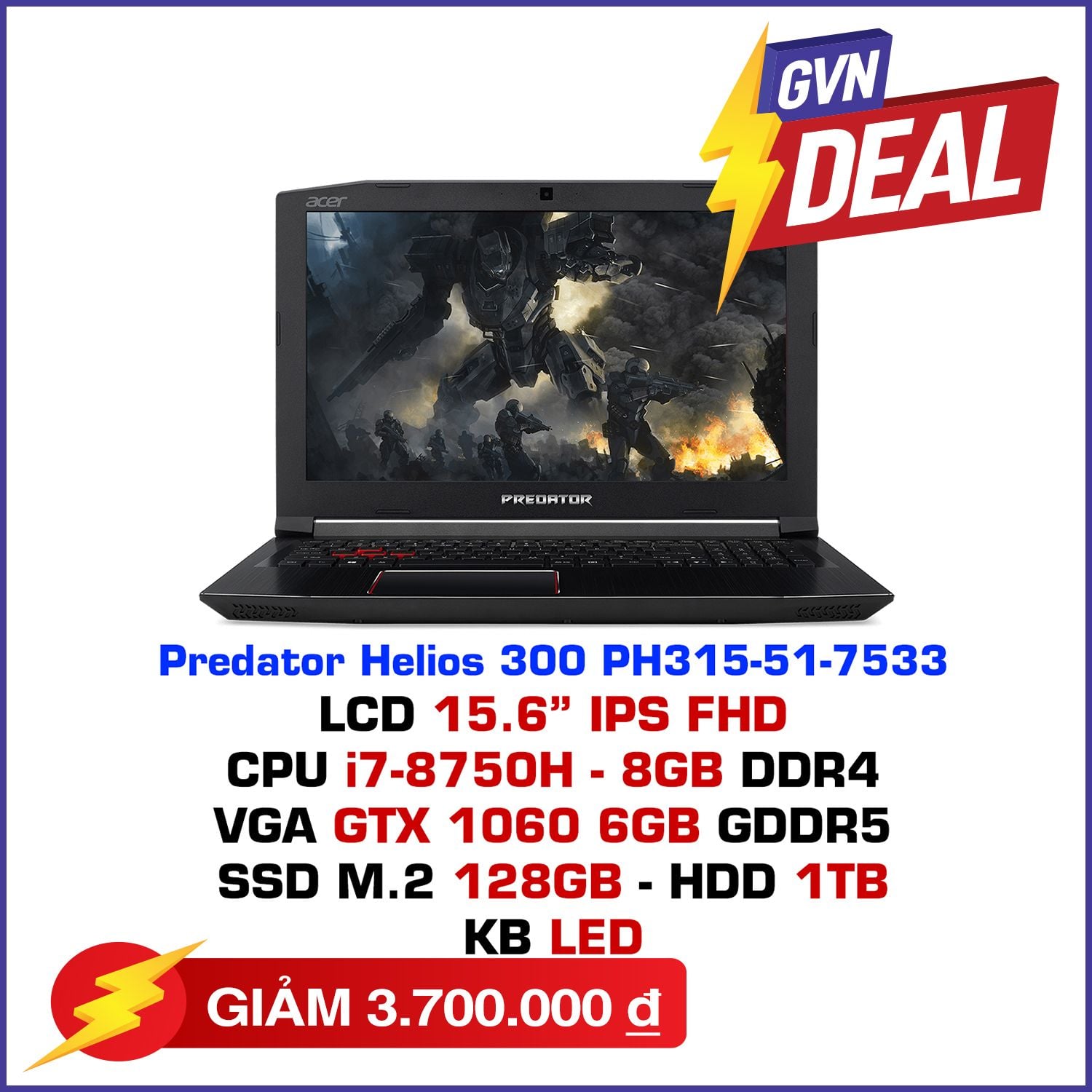 | Card VGA | NVIDIA GeForce® GTX 1060 6GB GDDR5 |