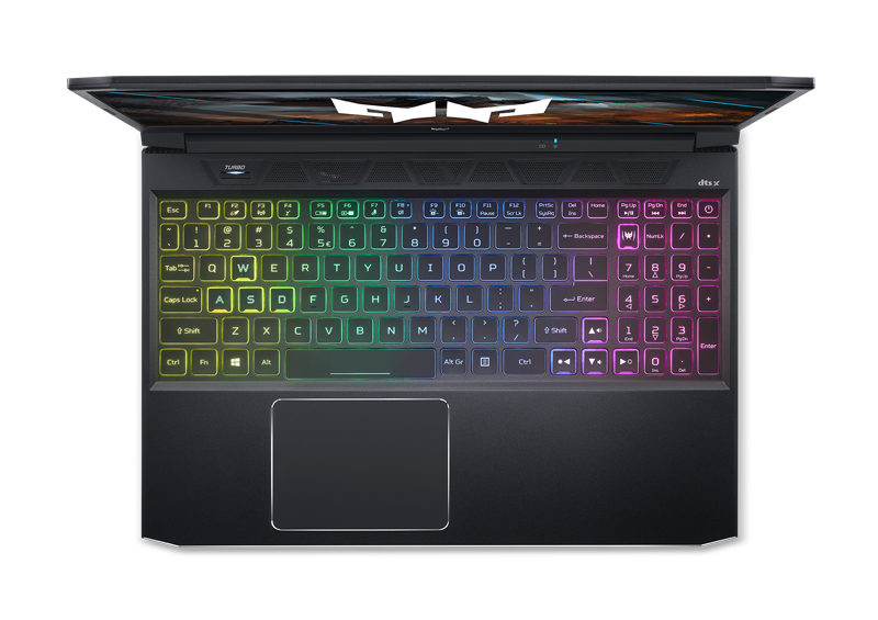 Trên nền đen chủ đạo, bàn phím fullsize led RGB 4 vùng giúp Acer Predator Helios 300 tỏa sáng đầy ấn tượng trong đêm tối. Hành trình phím có độ dài hợp lý, độ nảy tốt nên khi thao tác người dùng sẽ có cảm giác rất chắc tay và không sợ bị gõ nhầm. Các phím bấm đều được làm mũ lõm công thái học, cho phản hồi chân thực và cảm giác nhấn cực nhạy.