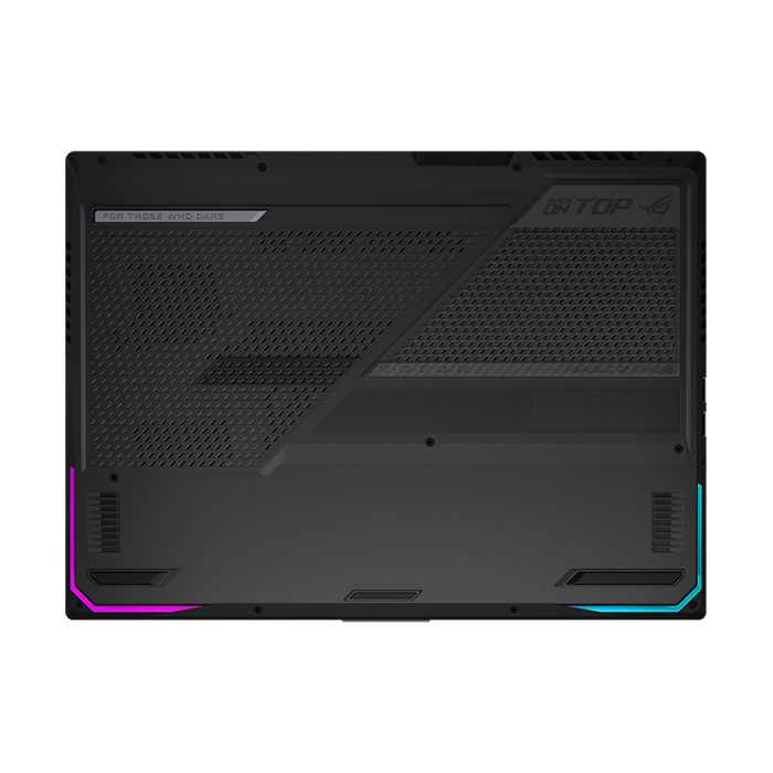 Không những thế ASUS ROG Strix SCAR 15 đã rất thành công khi phá vỡ mọi quy luật về ngôn ngữ thiết kế của laptop gaming. Khoác lên mình bộ áo đen mạnh mẽ, cá tính. Logo được đặt sang một bên kết hợp với đèn LED RGB để làm nổi bật mặt lưng đen nhám và tăng độ nhận dạng thương hiệu.