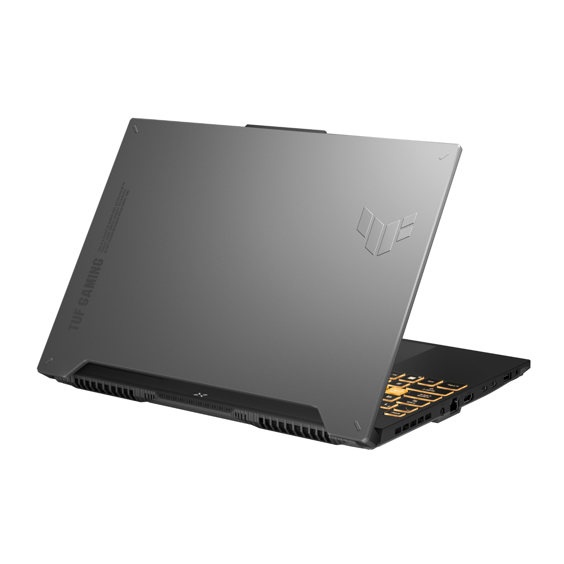 Nhìn từ các cạnh máy, bạn sẽ thấy ASUS TUF Gaming F15 FX507VV được trang bị đầy đủ những cổng kết nối cần thiết đối với một game thủ, cụ thể gồm: 1x Thunderbolt™ 4, 1x USB 3.2 Gen 2 Type-C, 2x USB 3.2 Gen 1 Type-A, 1x RJ45, 1x HDMI 2.1, 1x giắc cắm tai nghe 3.5mm. Ngoài ra, ASUS TUF Gaming F15 còn sở hữu viên pin có công suất đến 90 Wh, giúp bạn có thể sử dụng máy thuận lợi trong khoảng từ 4 - 6 giờ đồng hồ tùy thuộc vào tác vụ sử dụng. Tuy nhiên, nếu bạn thường xuyên chiến game thì bạn hãy kết nối laptop với nguồn điện để máy có thể cho ra hiệu năng tối ưu nhất khi bạn chơi game.