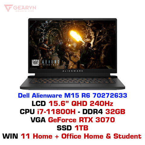 Dell Alienware M15 R6 70272633 mang lại khung hình 15.6 inch ở độ phân giải 2K QHD đem đến hình ảnh rộng và bắt mắt hơn. Là chiếc laptop dành cho gaming, không thể một tần số quét khủng, với con số 240Hz, Dell Alienware M15 R6 sẽ cho bạn mọi lợi thế cần thiết khi chơi game. Công nghệ NVIDIA G-Sync trên Dell Alienware M15 R6 hướng đến khả năng chơi game mượt mà và giảm thiểu tình trạng xé màn hình.