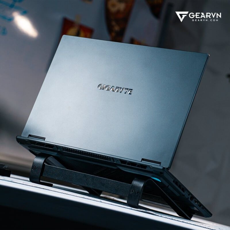 Gigabyte A16 CMHI2VN893SH khoác lên mình lớp vỏ màu đen nhám mạnh mẽ cùng sự tinh tế và chuyên nghiệp. Trên mặt A đó là logo Gigabyte tối giản để nhấn mạnh đến thương hiệu cũng như đặt trọng tâm cho chiếc laptop gaming. Hoàn thiện với trọng lượng khoảng 2.2kg, không quá nhẹ cũng không quá nặng nề đối với một chiếc laptop gaming sở hữu màn hình 16 inch và cũng sẵn sàng đồng hành cùng người dùng trong những chiếc balo laptop.