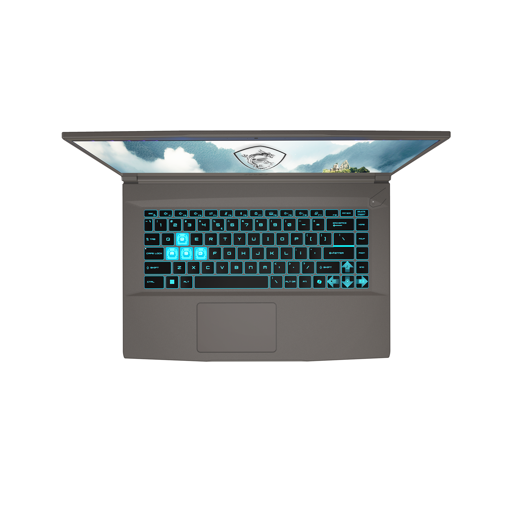 Bàn phím của MSI Thin 15 B13UC 1411VN mang thiết kế xuyên thấu độc đáo với cụm phím WASD, tạo nên điểm nổi bật, đậm chất gaming. Ngoài ra bàn phím của MSI Thin 15 còn được trang bị công nghệ Single Backlit với màu xanh bắt mắt, giúp bạn dễ dàng sử dụng trong điều kiện thiếu sáng. Tuy Touchpad được thiết kế theo kiểu đơn giản nhưng nhìn chung thì touchpad vẫn rất mượt mà và không gây rít tay khi chạm vào, khi ra mồ hôi tay cũng không bị chững lại.