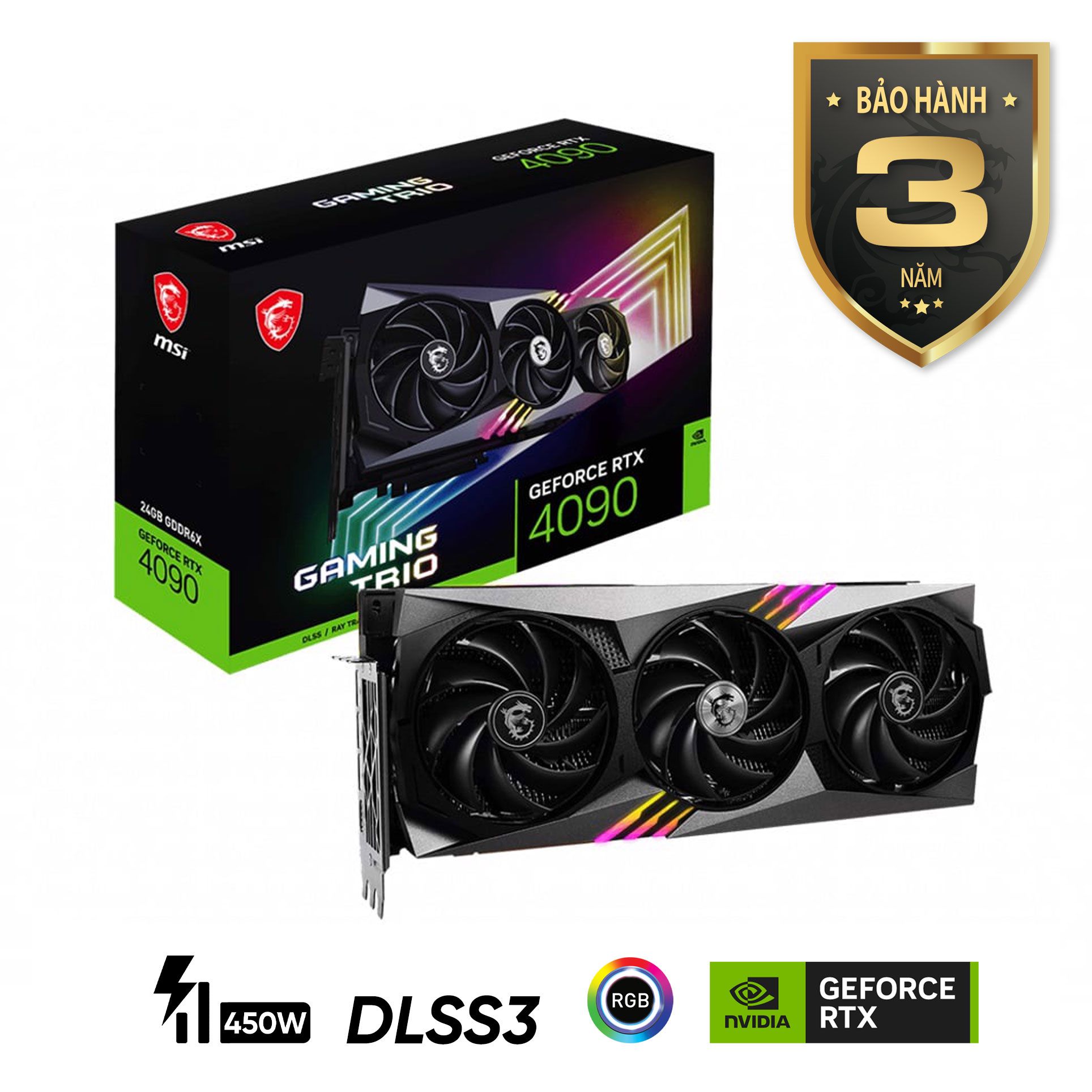 MSI GeForce RTX 4090 GAMING TRIO 24G sở hữu sức mạnh từ GeForce RTX 40 Series với nhiều cải tiến mạnh mẽ về hiệu năng và cả hiệu suất. Kết hợp với thiết kế độc đáo giúp MSI RTX 4090 GAMING TRIO 24G thêm phần ấn tượng.