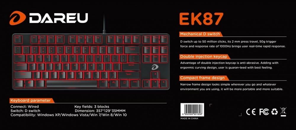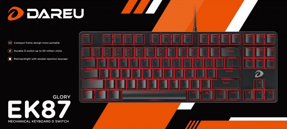 Bàn phím Gaming DareU EK87- Black - Brown Switch