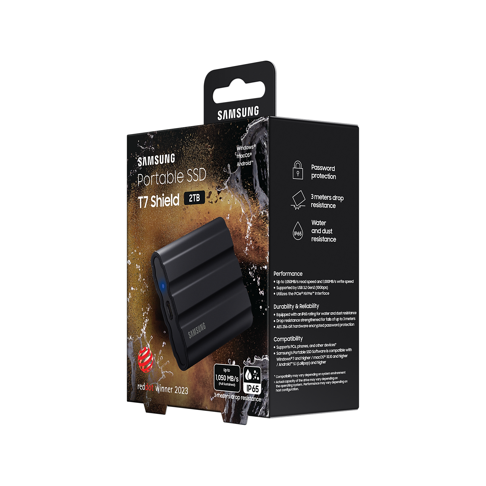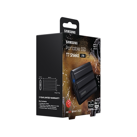 Ổ cứng di dộng SSD SamSung T7 Portable SHIELD 2TB, 2.5 inch, USB TypeC 3.2, Đen (MU-PE2T0S/WW)