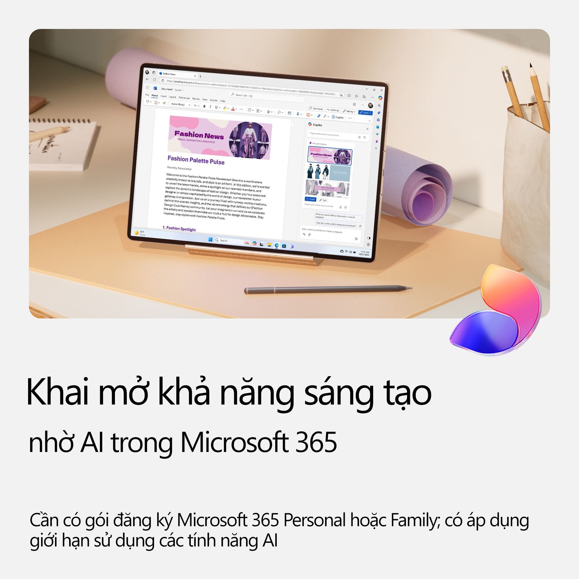 · Lưu Trữ Đám Mây 1TB với OneDrive: Bảo mật dữ liệu, sao lưu và truy cập dễ dàng từ bất kỳ thiết bị nào.