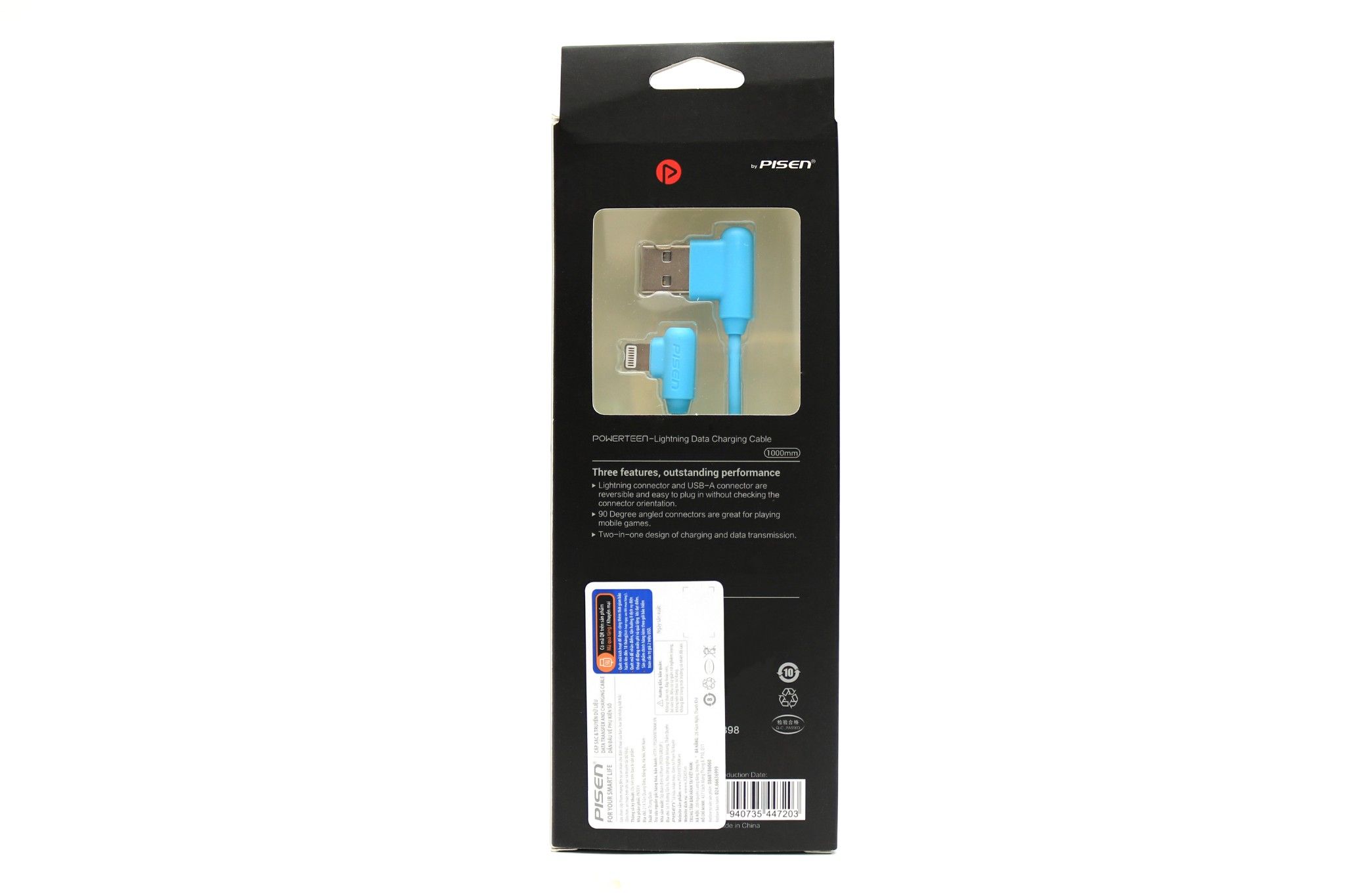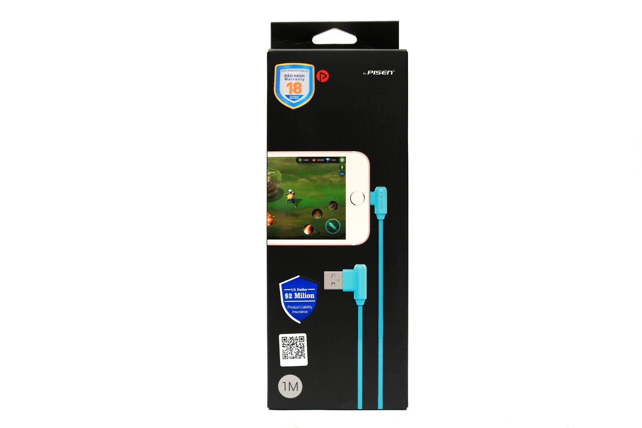Phụ kiện cáp Pisen Powerteen-Lighning 1000mm, Xanh nhạt